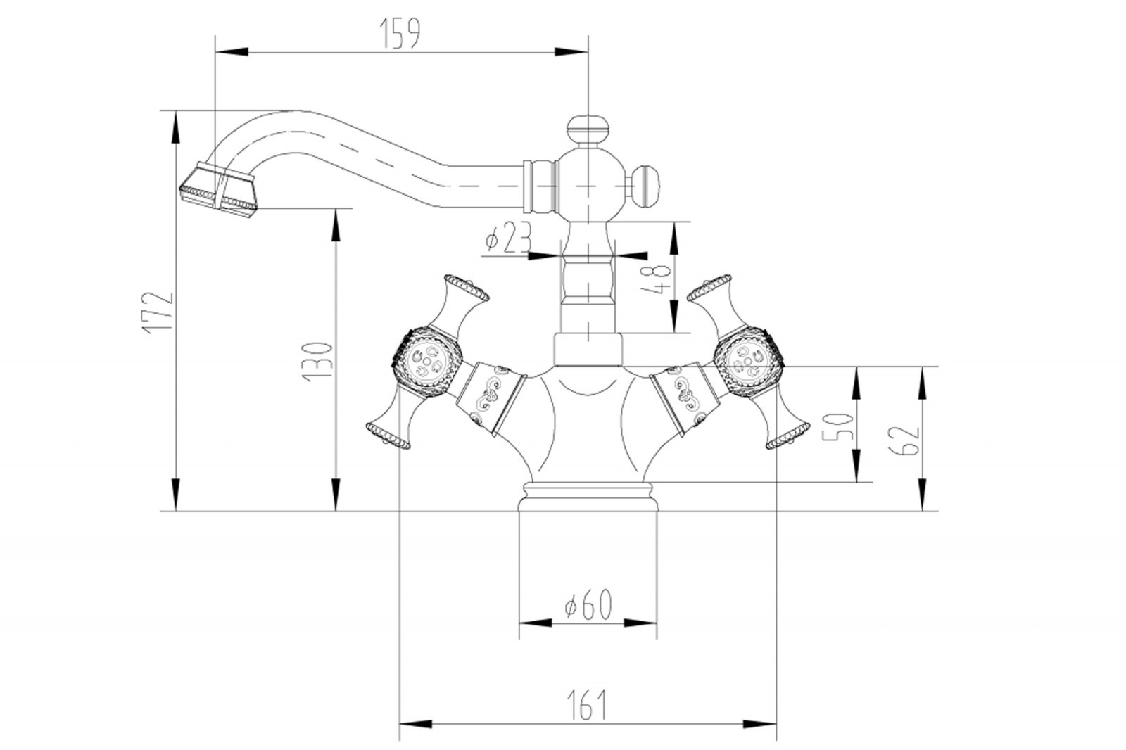 Смеситель станет удачным выбором для интерьеров в стиле ретро, кантри или средиземноморском. Бронзовый оттенок хорошо сочетается с керамикой, натуральным камнем и деревянной мебелью. Двухвентильная конструкция привычна в использовании и проста в обслуживании — при необходимости кран-буксы легко заменить.
