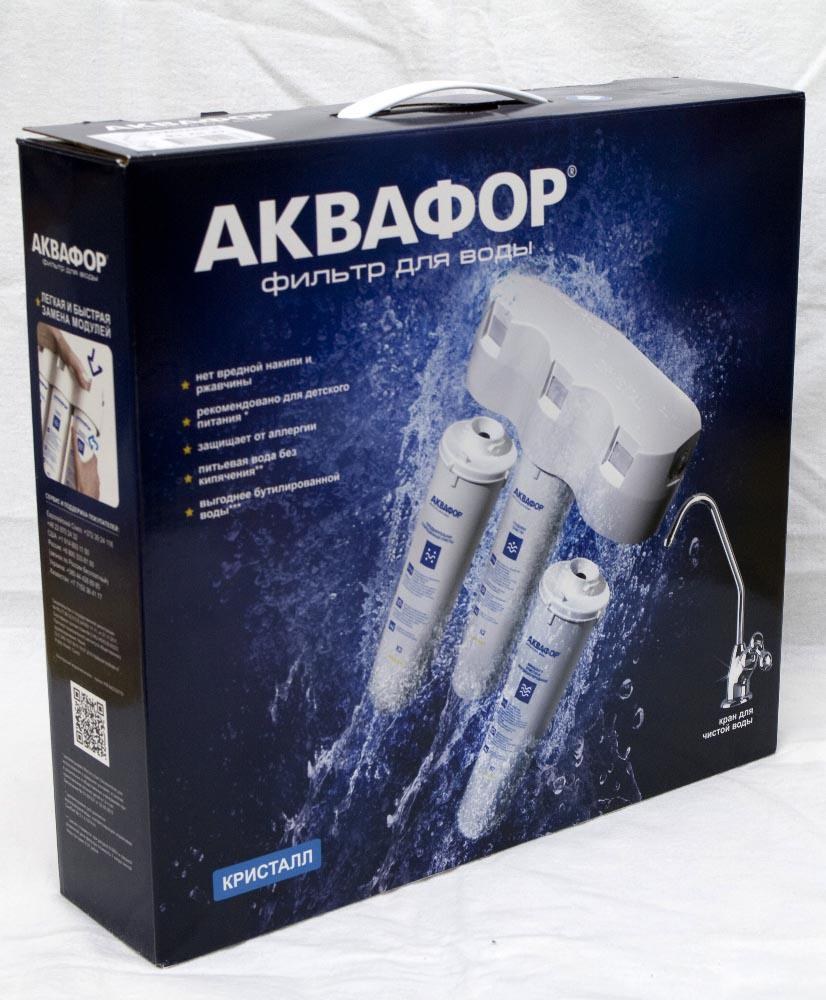 Трёхступенчатый проточный фильтр Аквафор Кристалл для мягкой воды очистит воду от хлора и примесей под мойкой, обеспечивая приятный вкус без кипячения и экономии на бутилированной воде.